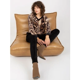Světle béžový a černý velurový komplet s kalhotami od RUE PARIS .