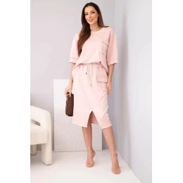 Dámský komplet s halenkou a midi sukní máslový tmavá pudrová růžová