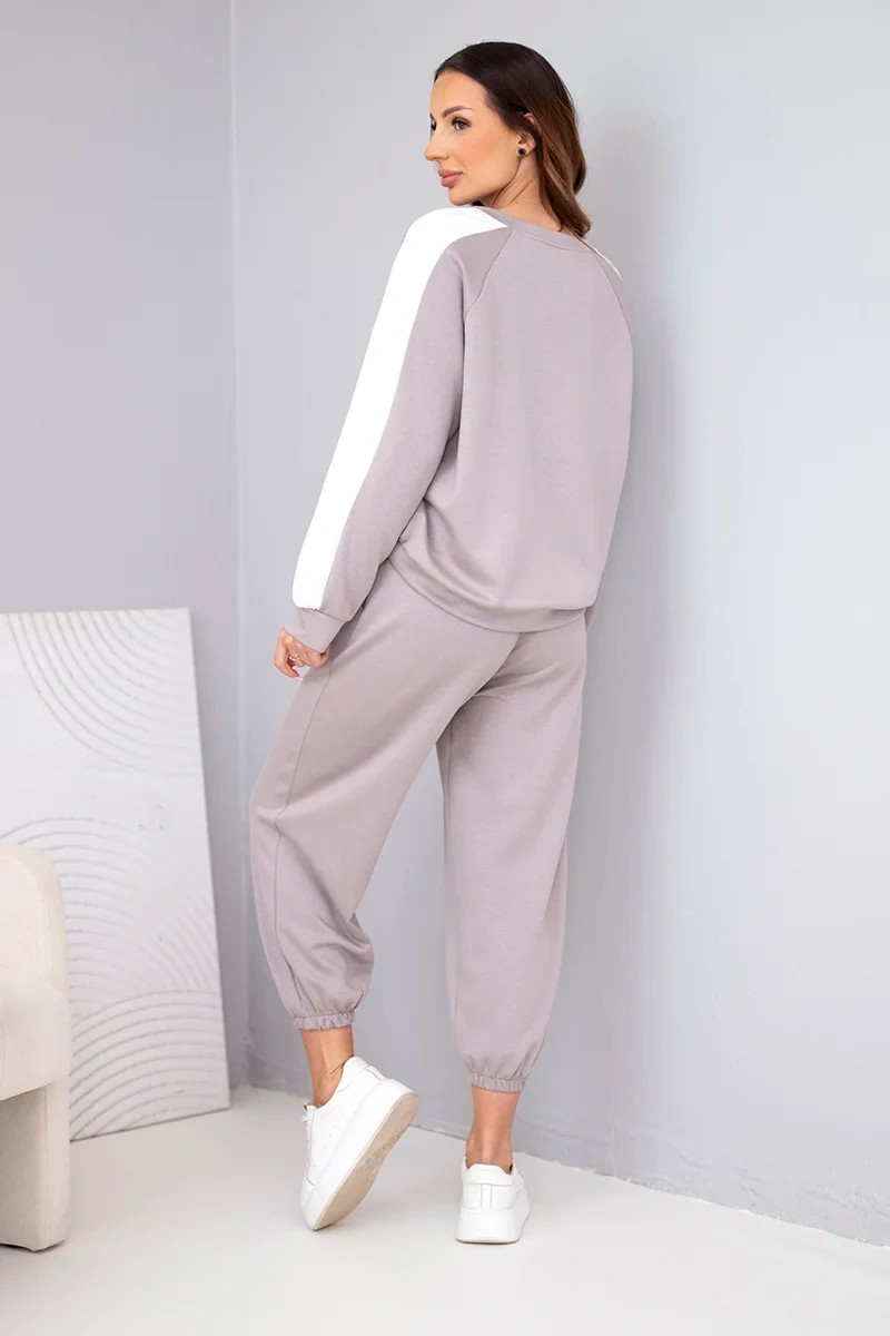 Dámský komplet s lampasem a manžetou máslový fango