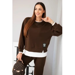 Dámský komplet s máslovou mikinou a volnými tepláky hnědý