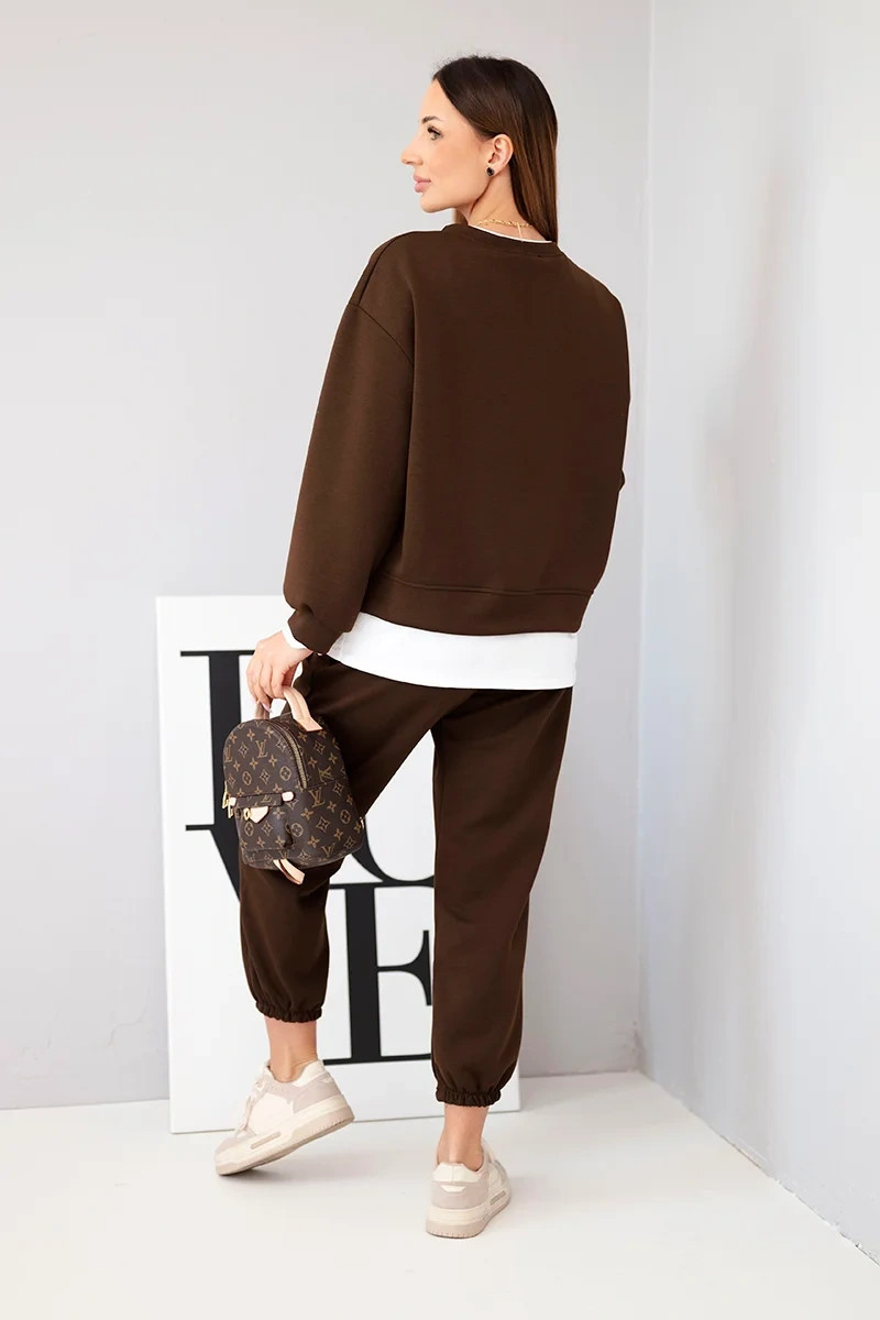 Dámský komplet s mikinou a tepláky hnědý model 21808621 - K-Fashion