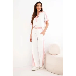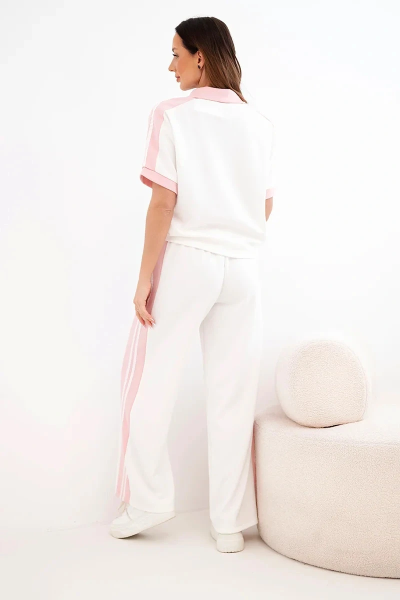 Dámský komplet s polo mikinou a širokými kalhotami máslový pudrově růžová