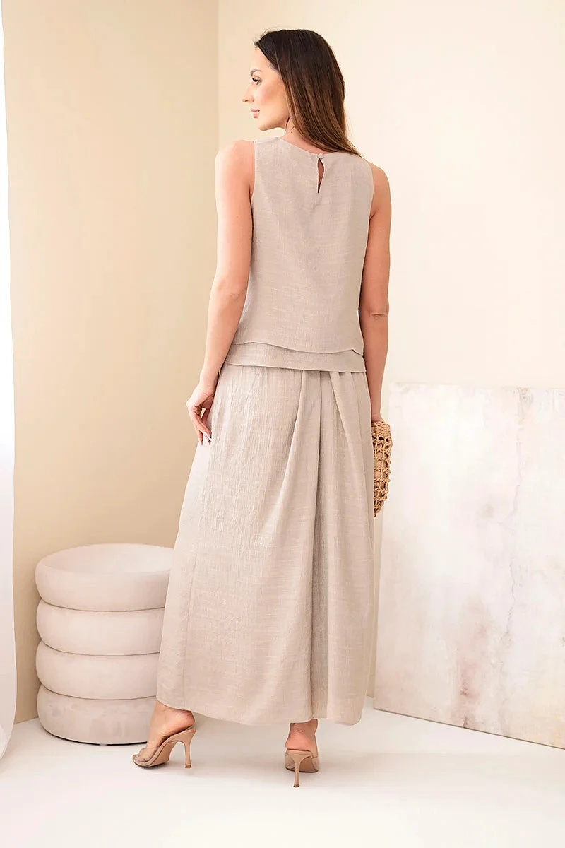Dámský komplet s viskózou s model 22048795 bez rukávů a kalhotami se širokou nohavicí s ozdobným zakončením fango - K-Fashion