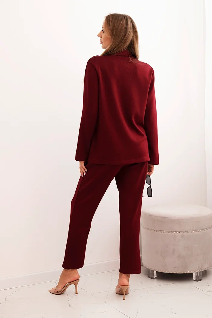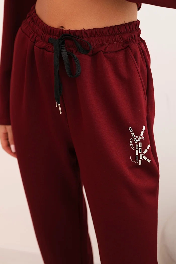 Dámský komplet s viskózou s ozdobami a elastickými kalhotami bordový