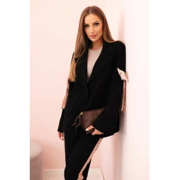 Dámský komplet s viskózou – sako s klopami a kalhoty s lampasem černý