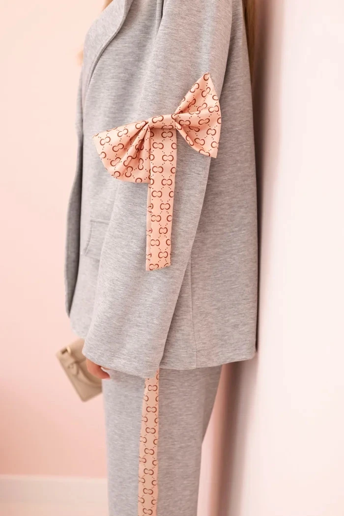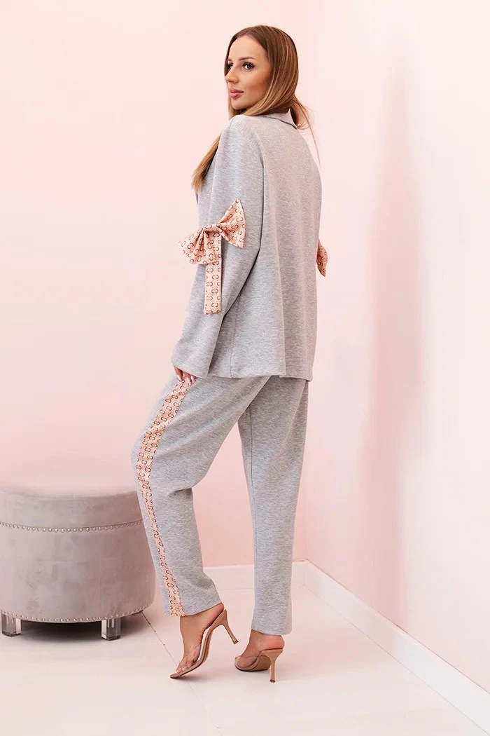 Dámský komplet s viskózou – sako s klopami a kalhoty s lampasem šedý