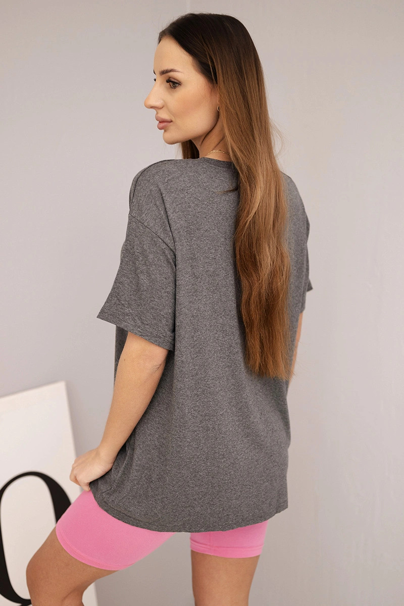 Dámský komplet s volnou blůzou a přiléhavými šortkami grafitový