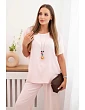 Stylový a pohodlný dámský komplet je skvělou volbou na každodenní nošení, do práce nebo na cesty. Skládá se z lehké, volné halenky s krátkým rukávem a širokých, pohodlných kalhot s elastickým pasem a šňůrkou na regulaci. Celek působí moderně a stylově, volný střih zaručuje pohodlí po celý den. Materiál je měkký, příjemný na dotek a snadno se udržuje – ideální pro ženy, které ocení praktická a stylová řešení. Komplet je skvělý na teplejší dny a jeho univerzální design umožňuje tvořit mnoho módních kombinací – jak se sandály, tak i se sportovní obuví. Velikost je univerzální a bude vhodná pro ženy ve velikosti S, M nebo L.