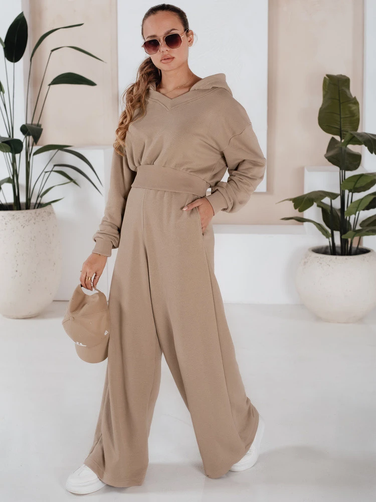 Dámský komplet širokých kalhot a mikiny MINALIA beige FashionStreet AY0918