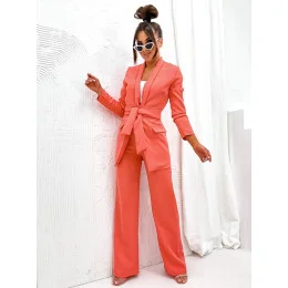 Přidání recenze k Dámský komplet v korálové barvě - volné sako a široké kalhoty (8167)