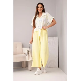 Dámský komplet viskózová košile s vázáním a kalhoty s gumou žlutý