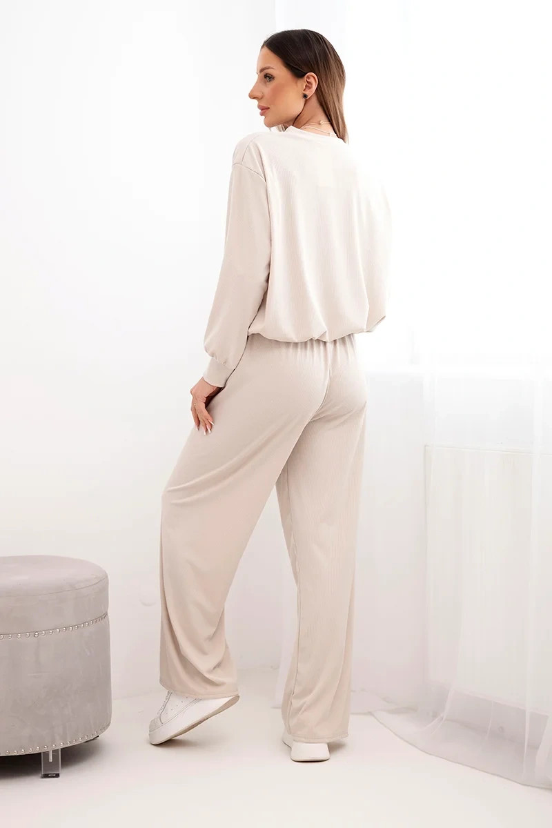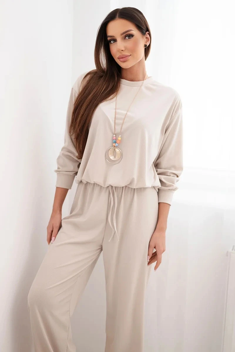 Dámský komplet viskózová mikina s přívěskem a široké kalhoty béžový