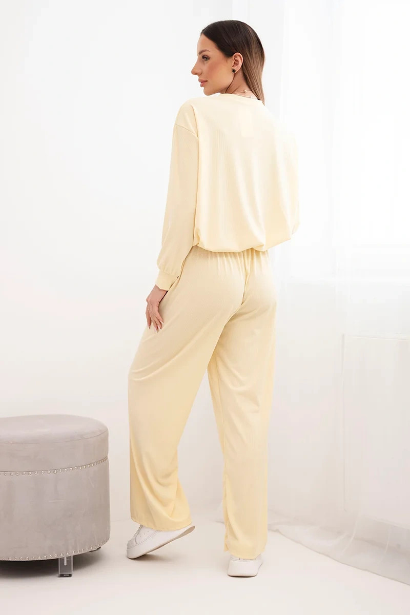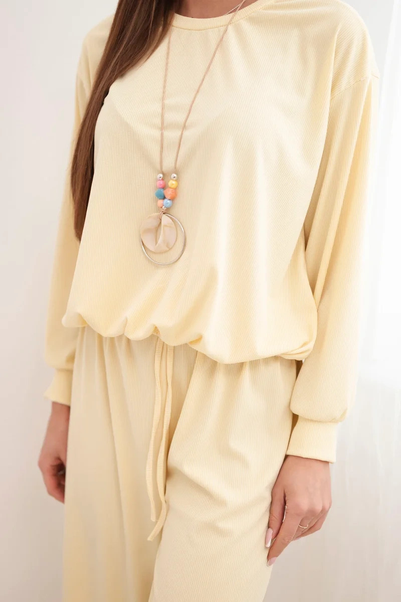 Dámský komplet viskózová mikina s přívěskem a široké kalhoty žlutý