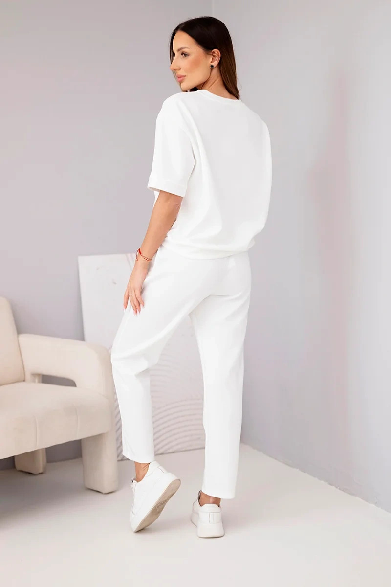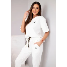 Stylový dámský komplet je vynikající volbou pro ženy, které si cení pohodlí a módního, minimalistického stylu. Sada se skládá z volné blůzky s krátkým rukávem a pohodlných kalhot s elastickým pasem. To je ideální dámský komplet na každodenní nošení – hodí se jak na procházku, nákupy, tak i do domácího prostředí.