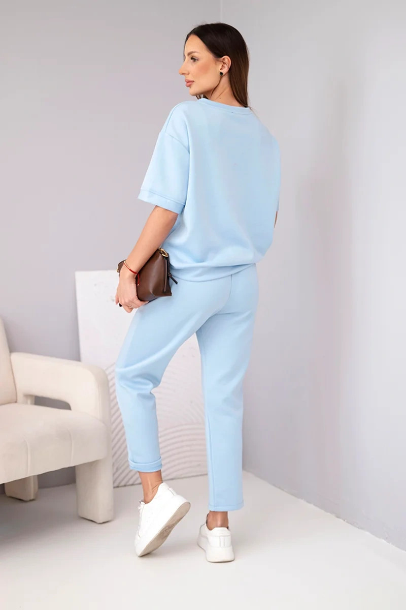 Dámský komplet viskózový máslo s krátkým rukávem a kalhotami s ohrnutým nohavicí modrý
