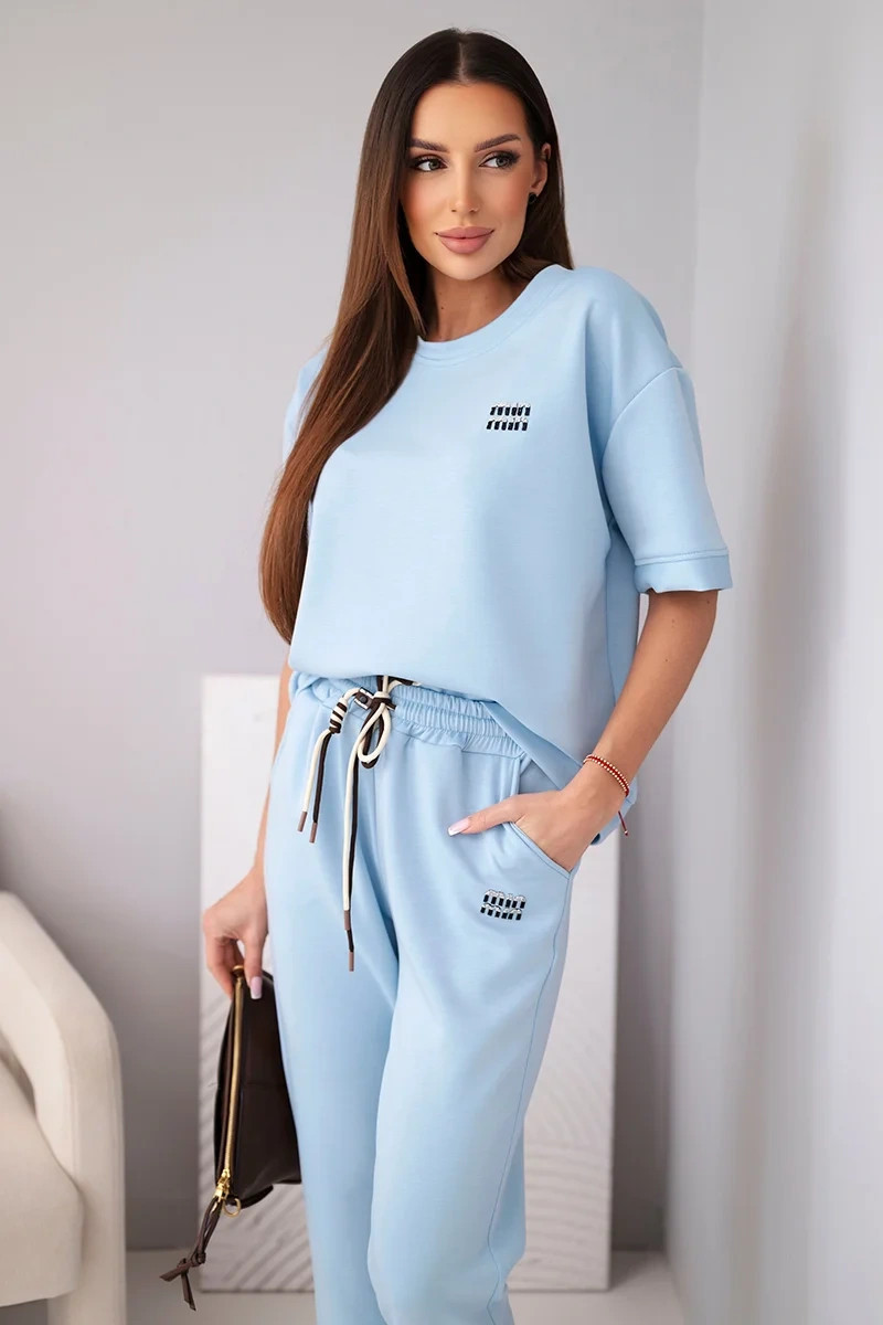 Stylový dámský komplet je vynikající volbou pro ženy, které si cení pohodlí a módního, minimalistického stylu. Sada se skládá z volné blůzky s krátkým rukávem a pohodlných kalhot s elastickým pasem. To je ideální dámský komplet na každodenní nošení – hodí se jak na procházku, nákupy, tak i do domácího prostředí.