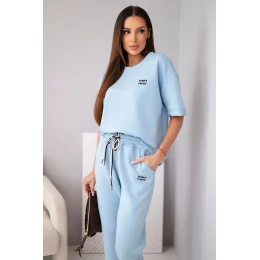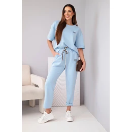Dámský komplet viskózový máslo s krátkým rukávem a kalhotami s ohrnutým nohavicí modrý
