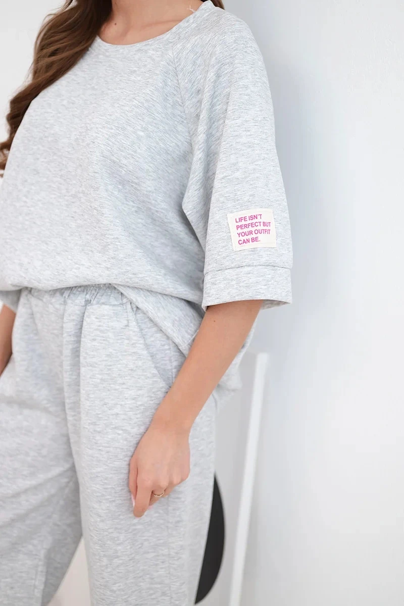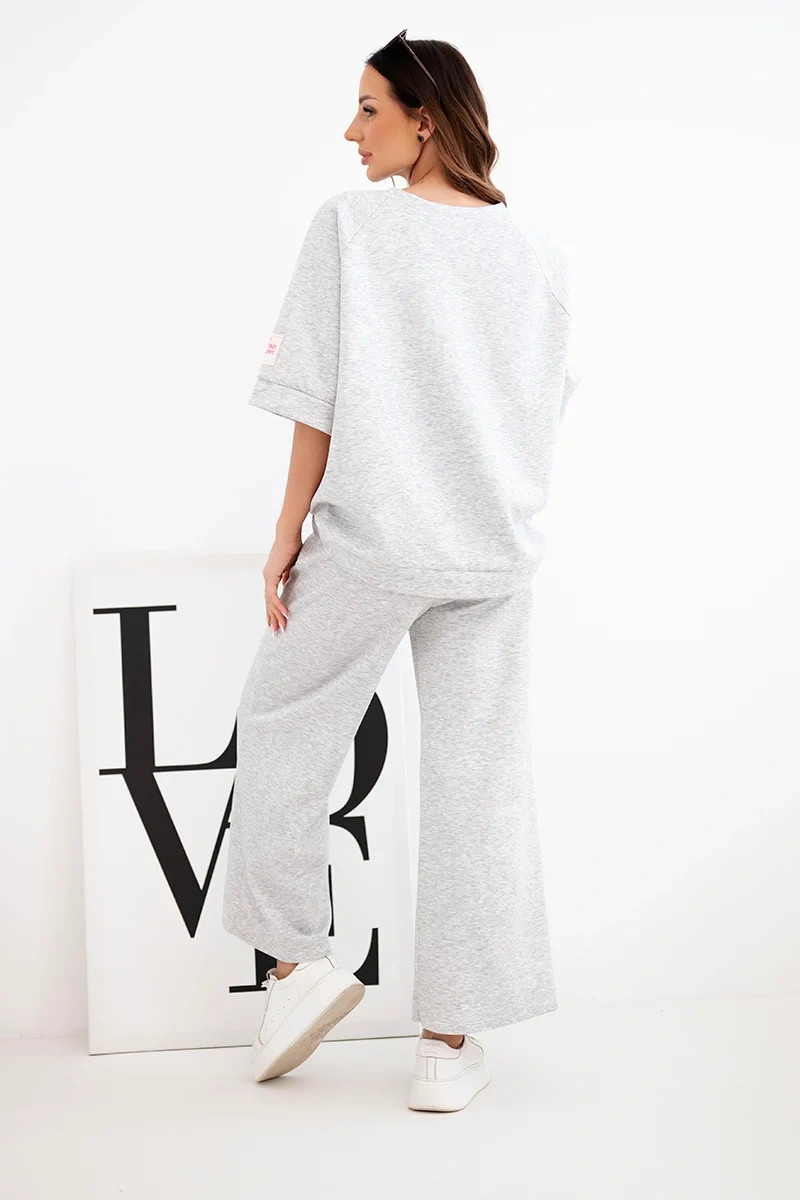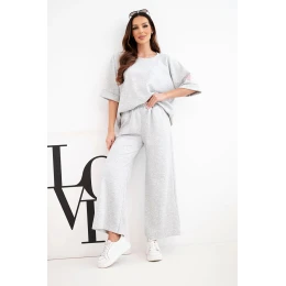 Dámský komplet z máslové viskózy mikina a široké kalhoty šedý melanž