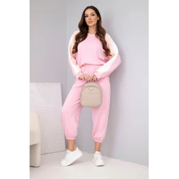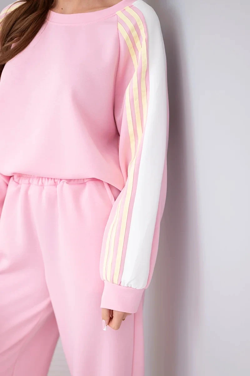 Dámský komplet z měkkého materiálu s lampasem a model 22015446 světle růžový - K-Fashion