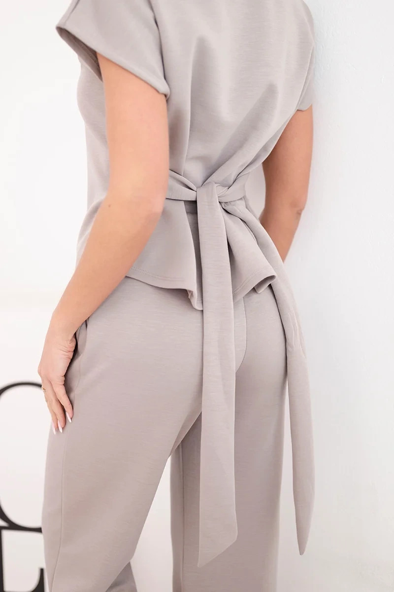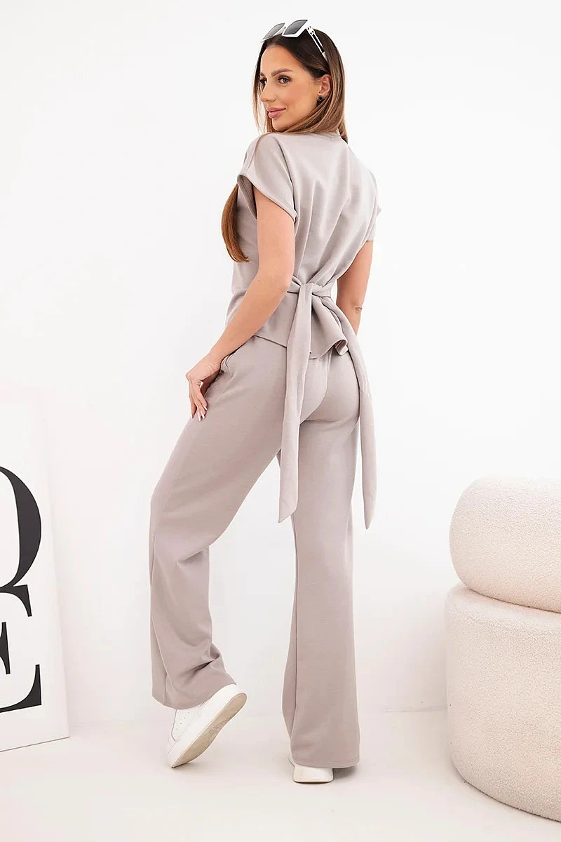 Dámský komplet z model 22048835 materiálu s halenkou s krátkým rukávem a kalhotami se širokou nohavicí fango - K-Fashion