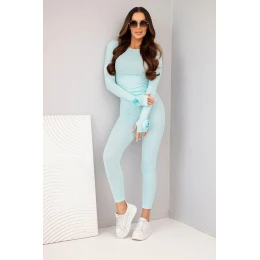 Dámský komplet z pruhované viskózy s dlouhým rukávem a legínami mátový