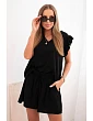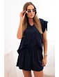 Dámský komplet z viskózy, blůza s volánky a krátké šortky černý