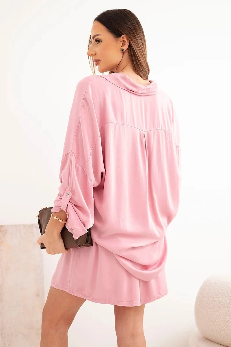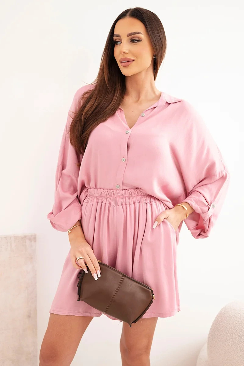 Dámský komplet z viskózy, košile s knoflíky a volné šortky tmavě růžová