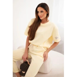Dámský komplet z viskózy máslíčko s krátkým rukávem a kalhotami žlutý