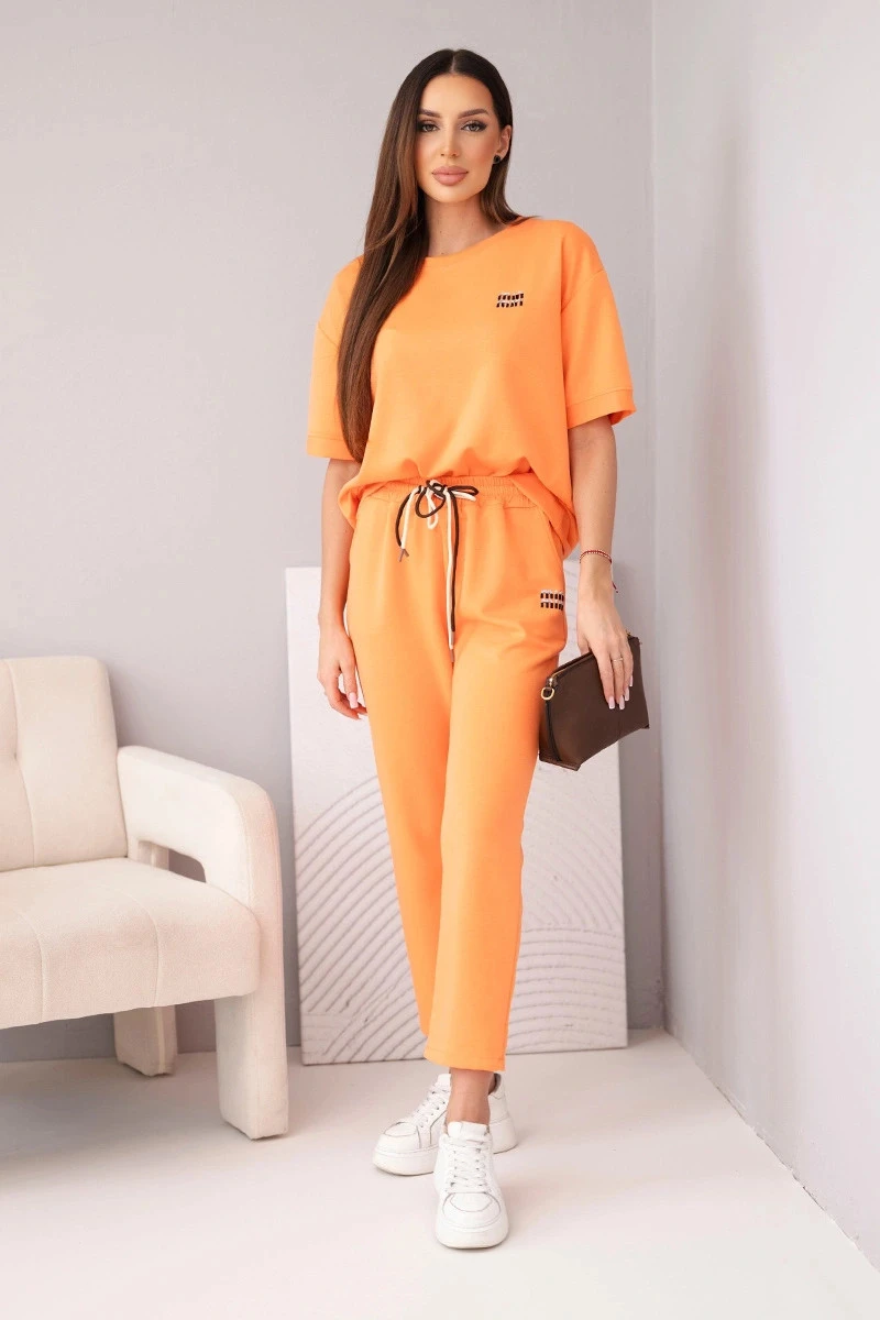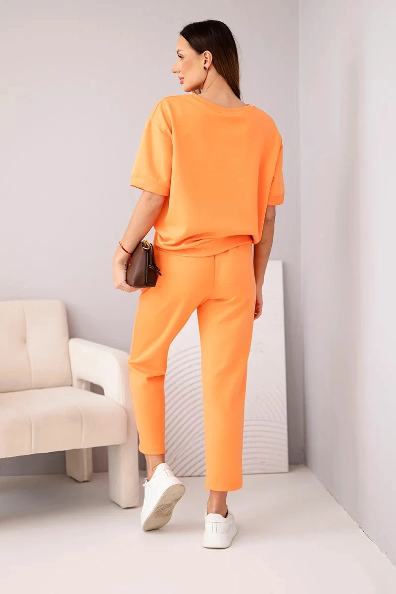 Dámský komplet z viskózy máslový s krátkým rukávem a kalhotami s ohrnutým lemem oranžový