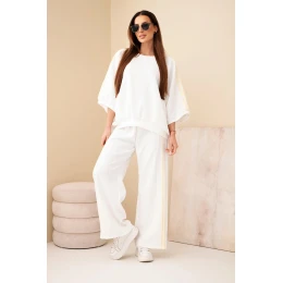 Dámský komplet z viskózy máslový se širokými nohavicemi a volnou blůzou bílý