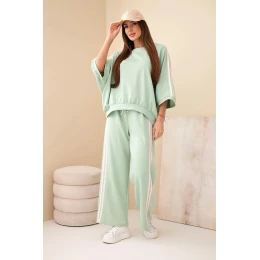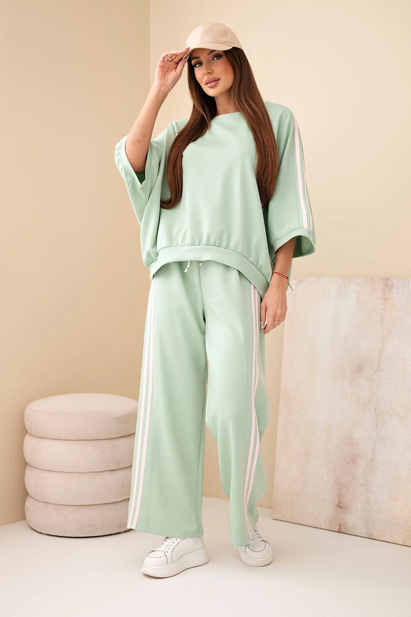 Dámský komplet z viskózy máslový se širokými nohavicemi a volnou blůzou tmavě mátový