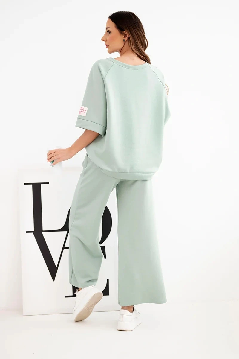 Vyrobený z vysoce kvalitní viskózy s přídavkem elastanu je set neobyčejně měkký, jemný k pokožce a příjemný na nošení. Mikina s volným střihem se skvěle přizpůsobí postavě a kalhoty se širokou nohavicí dodávají outfitu moderní charakter. Ideální volba na každý den, do práce v ležérnějším provedení, na procházku nebo cestování.
