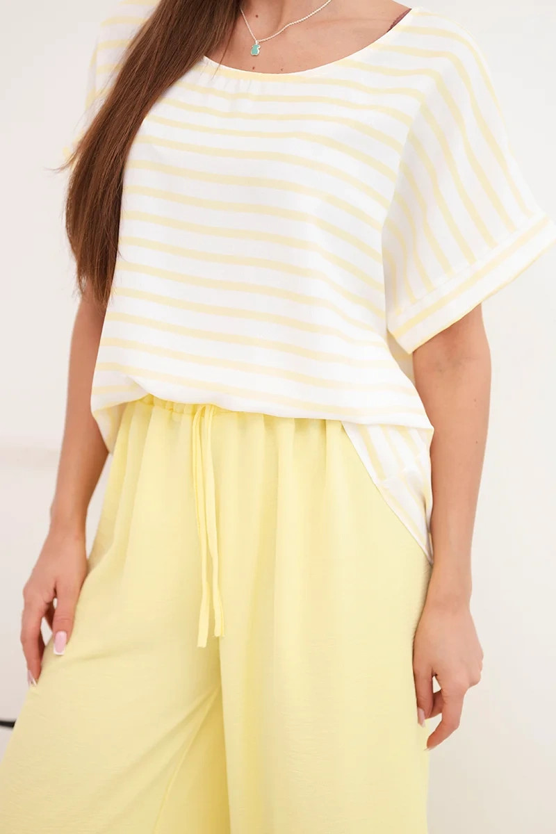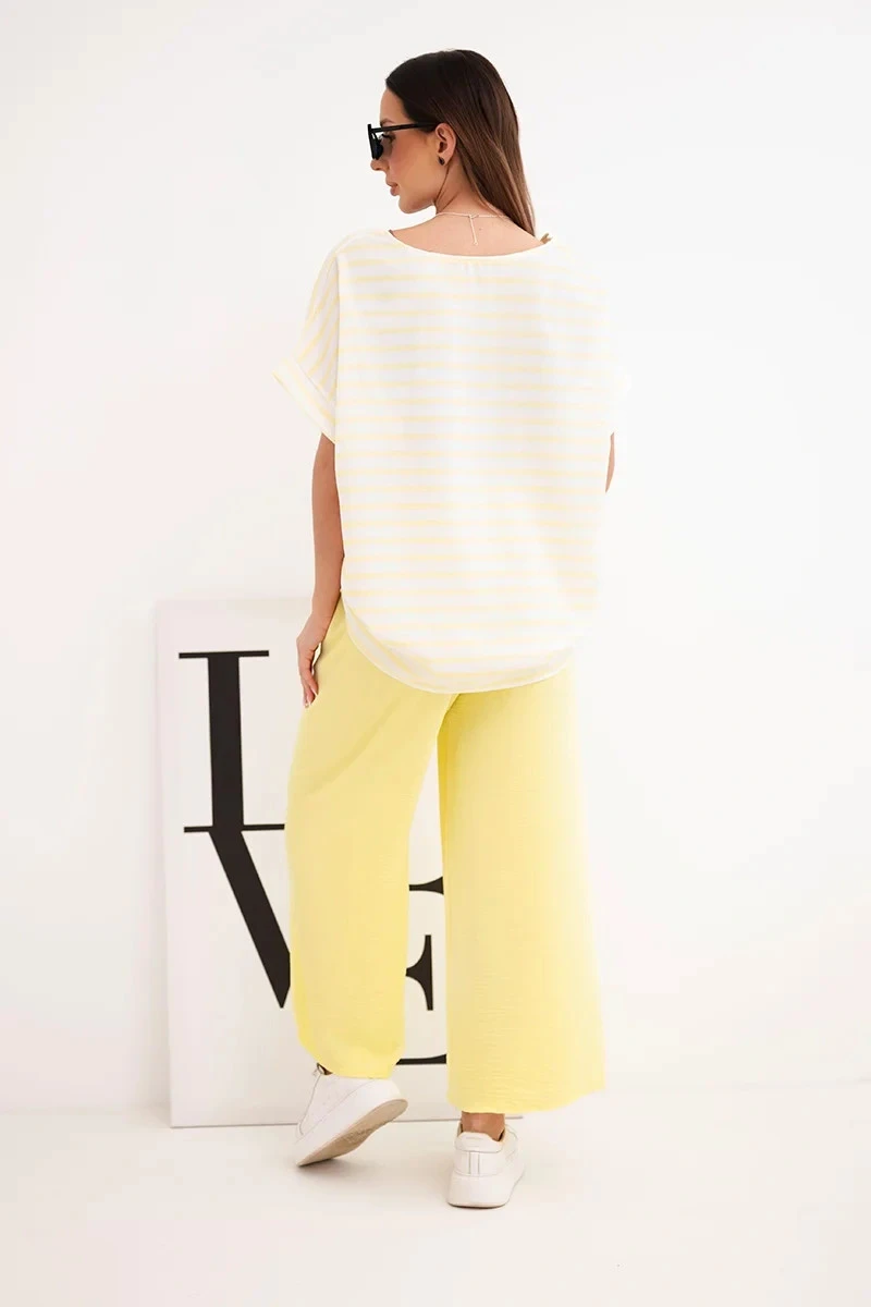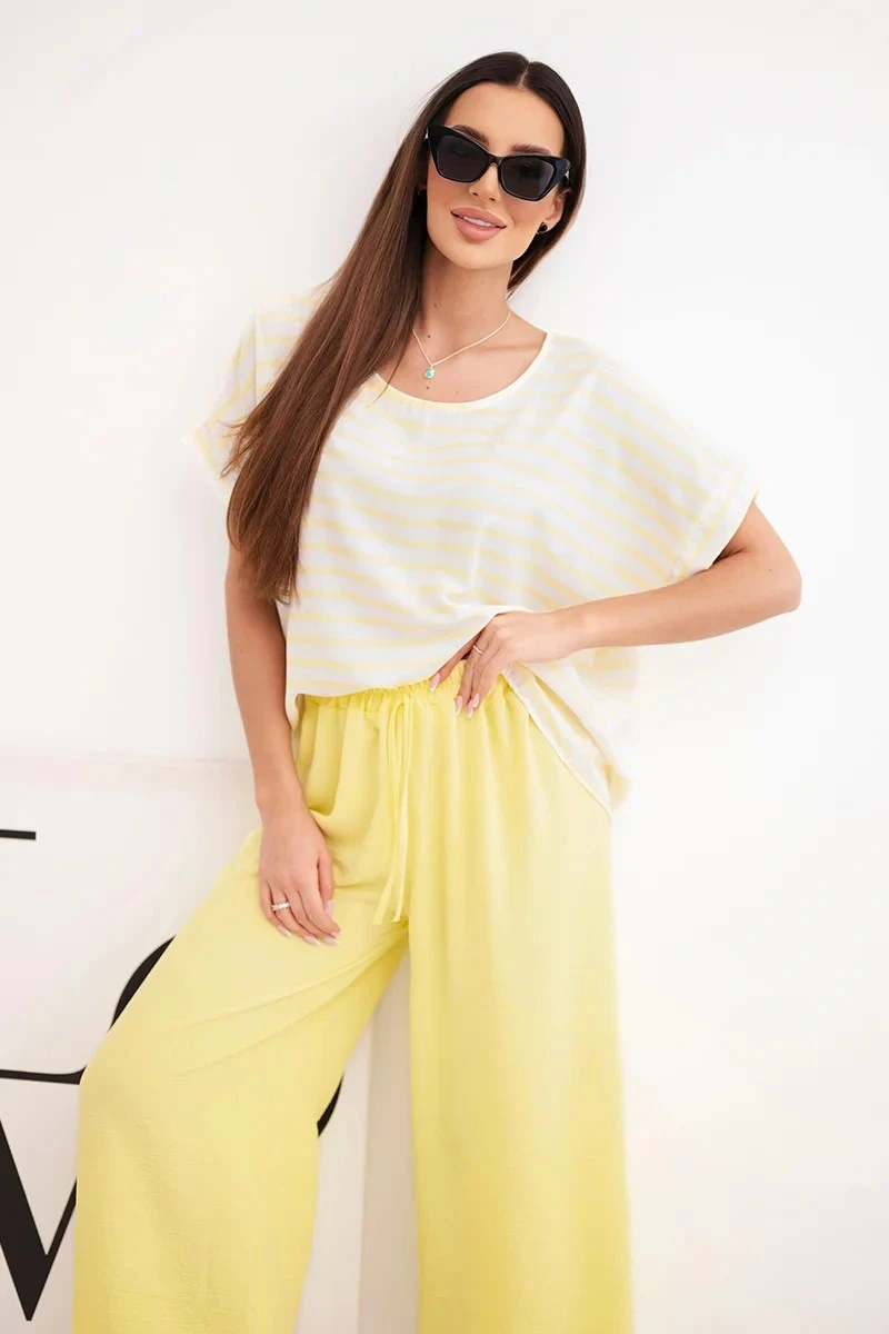 Dámský komplet z viskózy s blůzou a širokými kalhotami na žlutý model 21951961 - K-Fashion