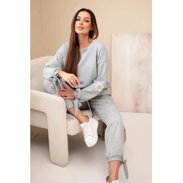 Dámský komplet z viskózy s mašlemi máslový šedý