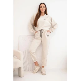 Dámský komplet z viskózy s mikinou a kalhotami béžový