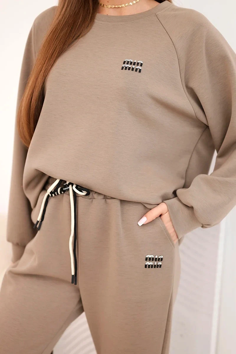 Dámský komplet z viskózy s mikinou a kalhotami fango masełkowy