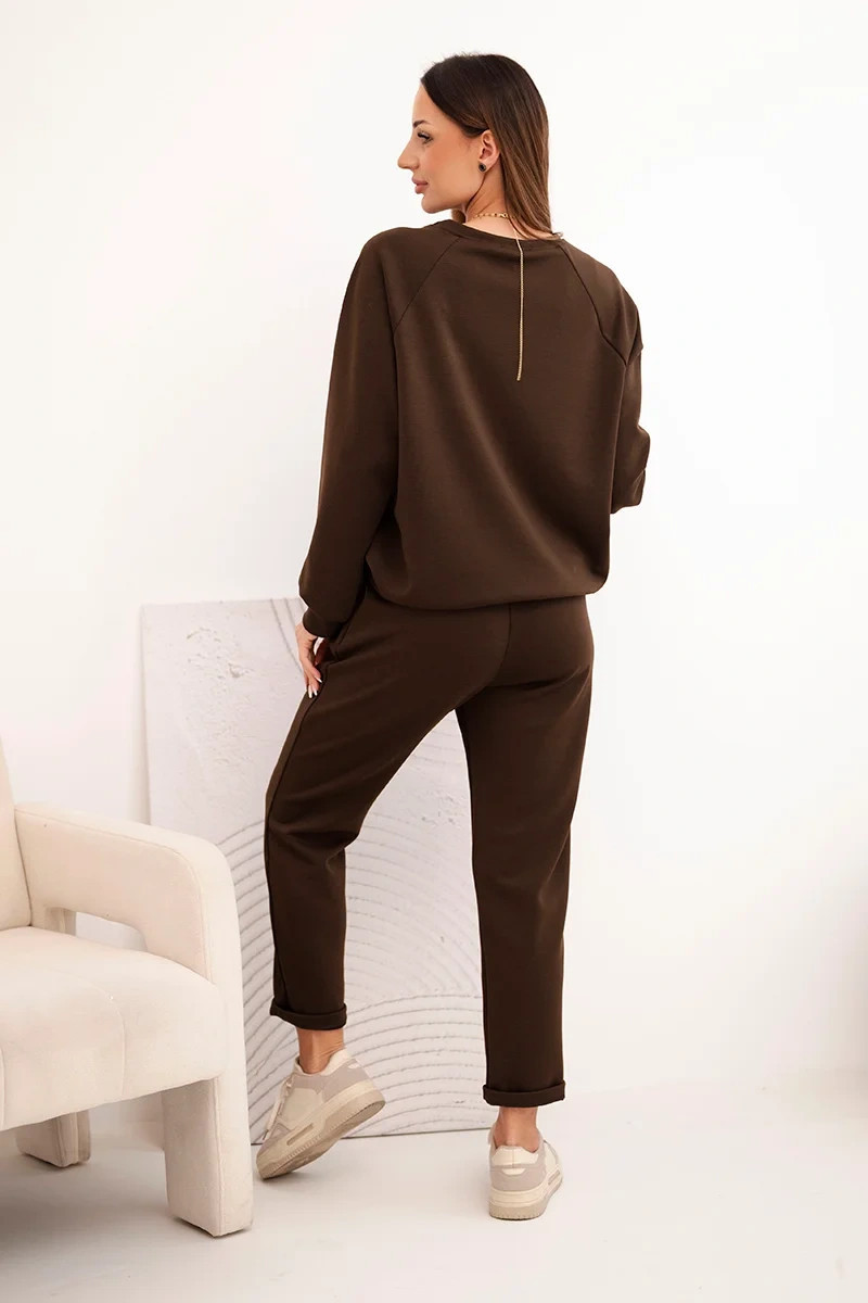 Dámský komplet z viskózy s mikinou a kalhotami hnědý
