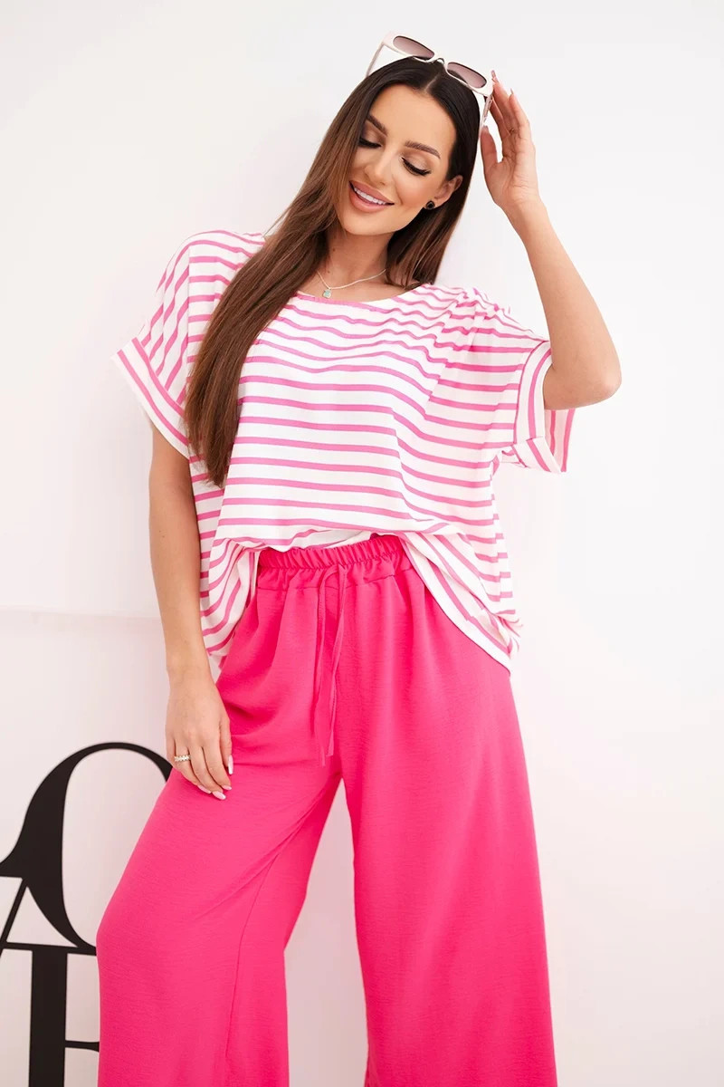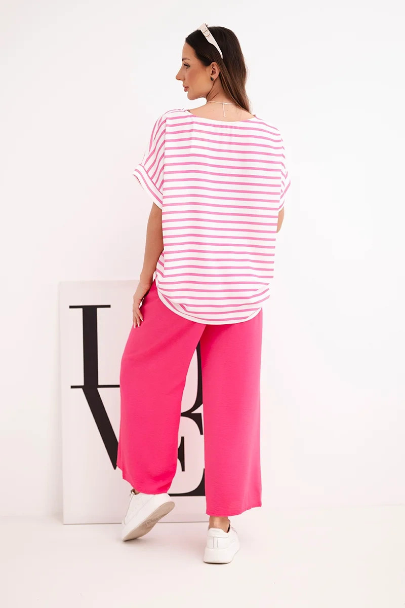 Dámský komplet z viskózy s model 21951955 blůzou a širokými kalhotami s gumou fuchsie - K-Fashion