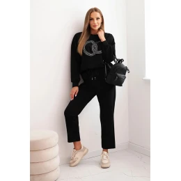 Dámský komplet z viskózy s ozdobným motivem a kalhotami černá