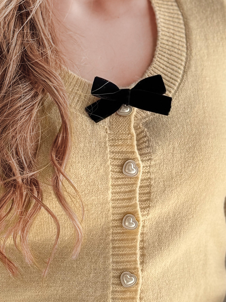Krátký svetr s decentním dívčím designem, který kombinuje klasiku s okouzlujícími romantickými detaily. Ozdobné knoflíky ve tvaru srdce dodávají jemnost, zatímco sametová mašle podtrhuje elegantní charakter. Univerzální velikost se hodí pro velikosti od XS do L. Žebrované manžety a spodní lem zaručují dokonalé přizpůsobení. Je vyroben z měkkého, hřejivého materiálu, který se bude hodit jak do chladnějších dnů, tak na lehkou stylizaci, a je volbou pro ženy, které ocení pohodlí a dívčí styl.