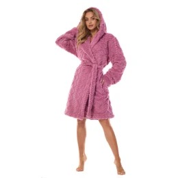 Dámský krátký župan 2401 je určen pro ženy, které si cení pohodlí a útulnosti každý den. Je vyroben z výjimečně měkkého úpletu s reliéfním vystouplým vzorem, obepíná tělo a příjemně hřeje. Díky kapuci, dlouhým rukávům a zavazování v pase je ideální volbou pro ranní i večerní domácí nošení. Dvě praktické vnější kapsy umožňují uložení drobností nebo zahřátí rukou. Díky krátké délce je lehký a pohodlný na nošení. Župan je ideální pro chladnější dny i jako každodenní domácí oblečení.