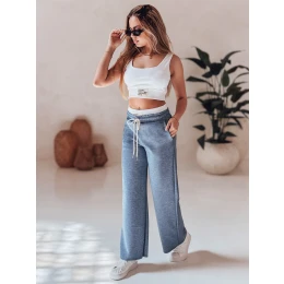 Tento dámský dvoudílný komplet kombinuje pohodlí s moderním designem. Žebrovaný top bez ramínek je opatřen poutavou nášivkou s nápisem, která dodává stylu jedinečný nádech. Kalhoty s vysokým pasem a širokými nohavicemi nabízejí pohodlné nošení díky elastickému pasu a šňůrce v pase. Poutavým detailem je také efekt vrstveného pásku s nášivkou. Model je ideální pro teplejší dny - ideální volba na jaro a léto.
