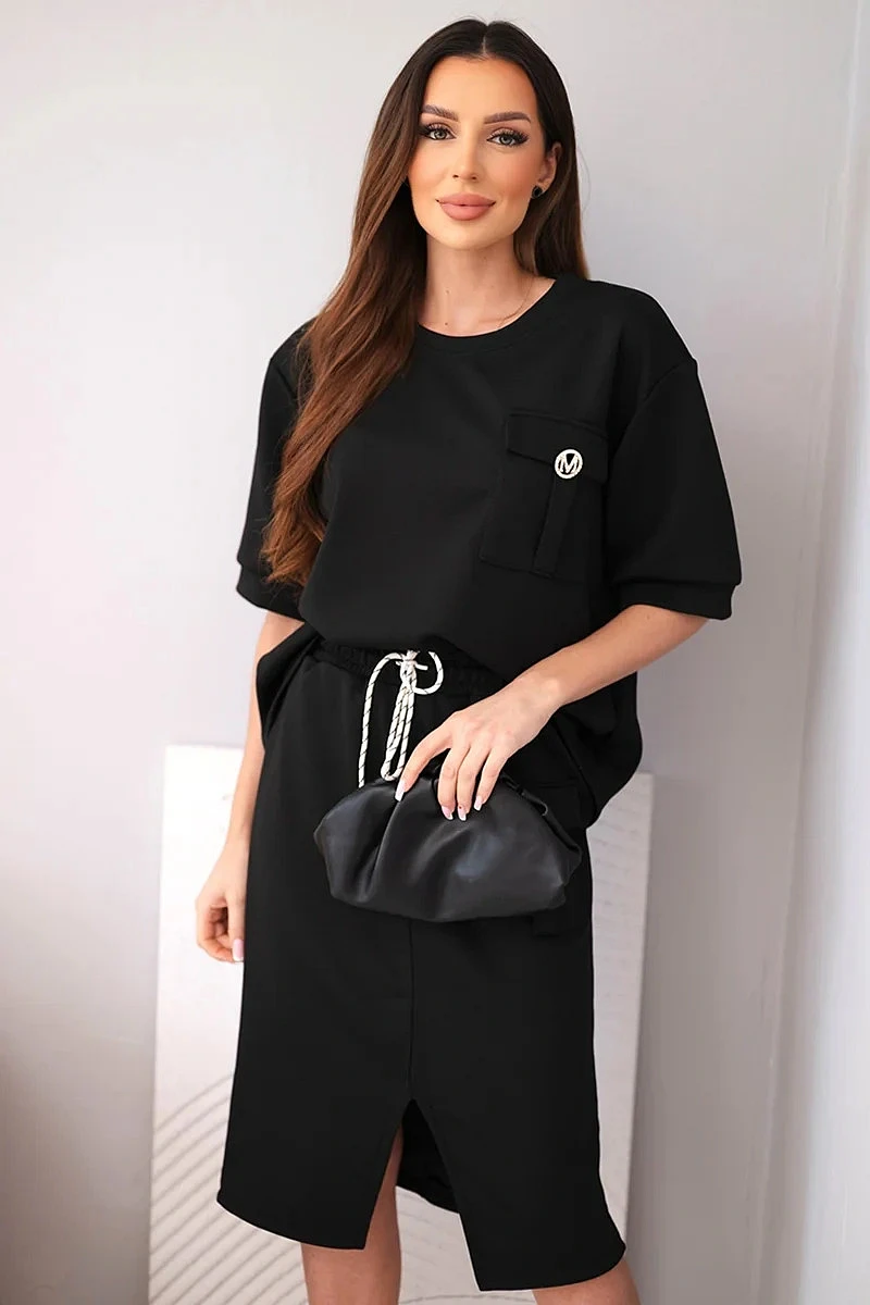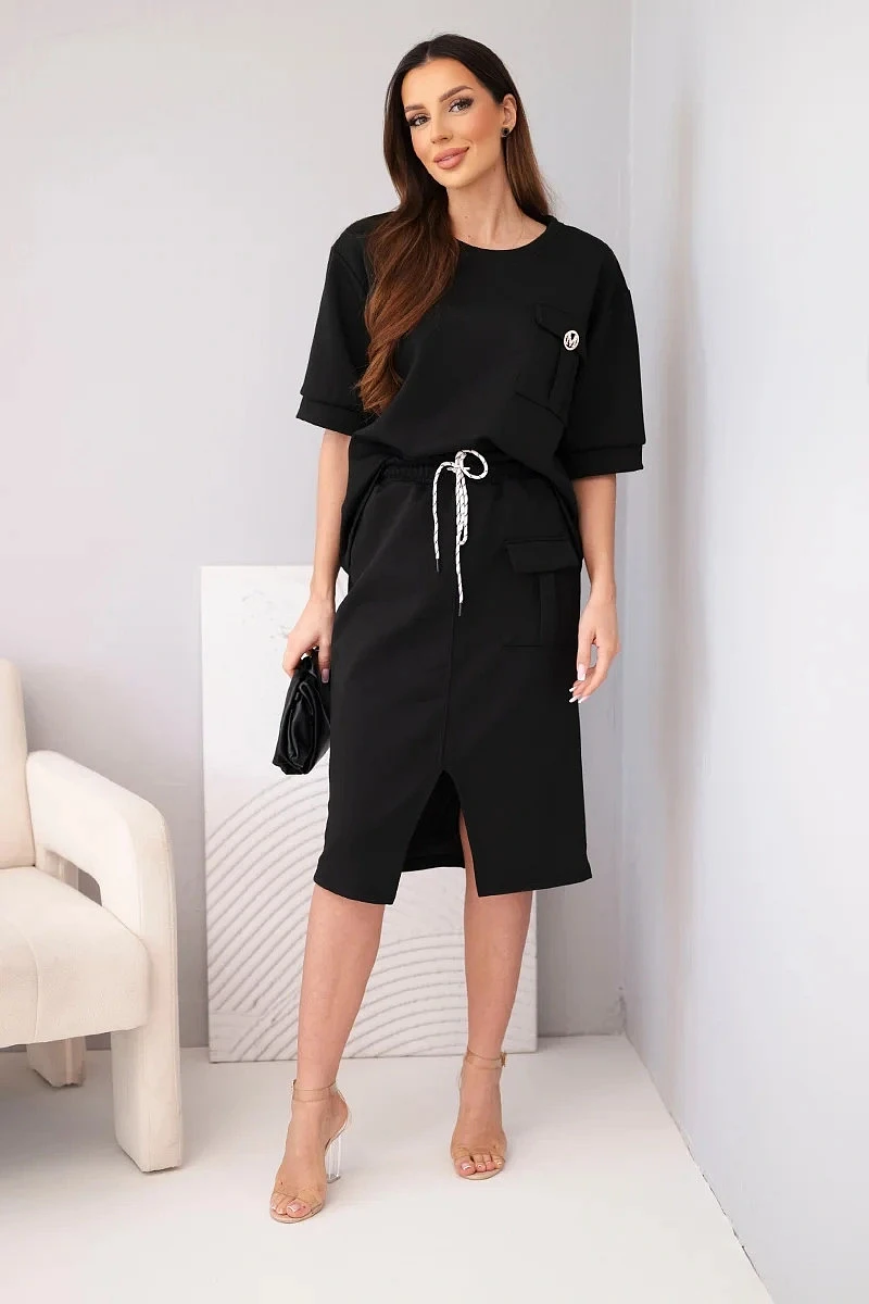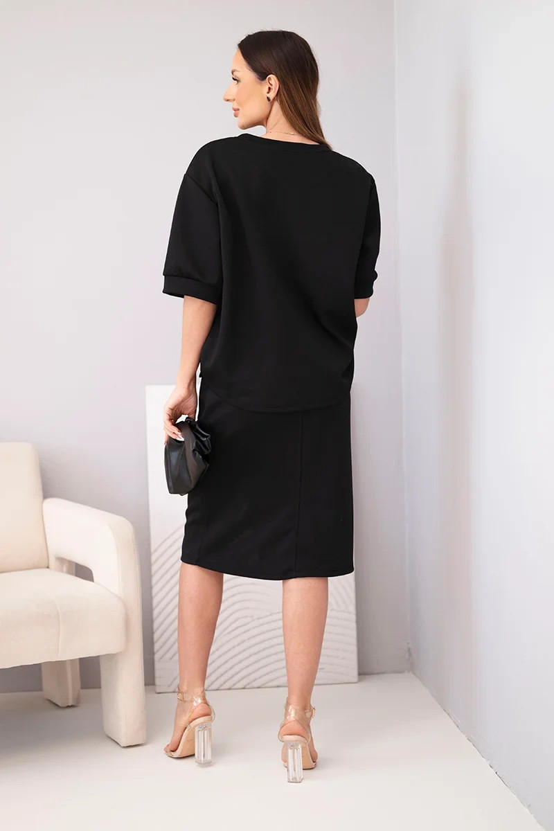 Dámský máslový komplet s blůzkou a midi sukní černý