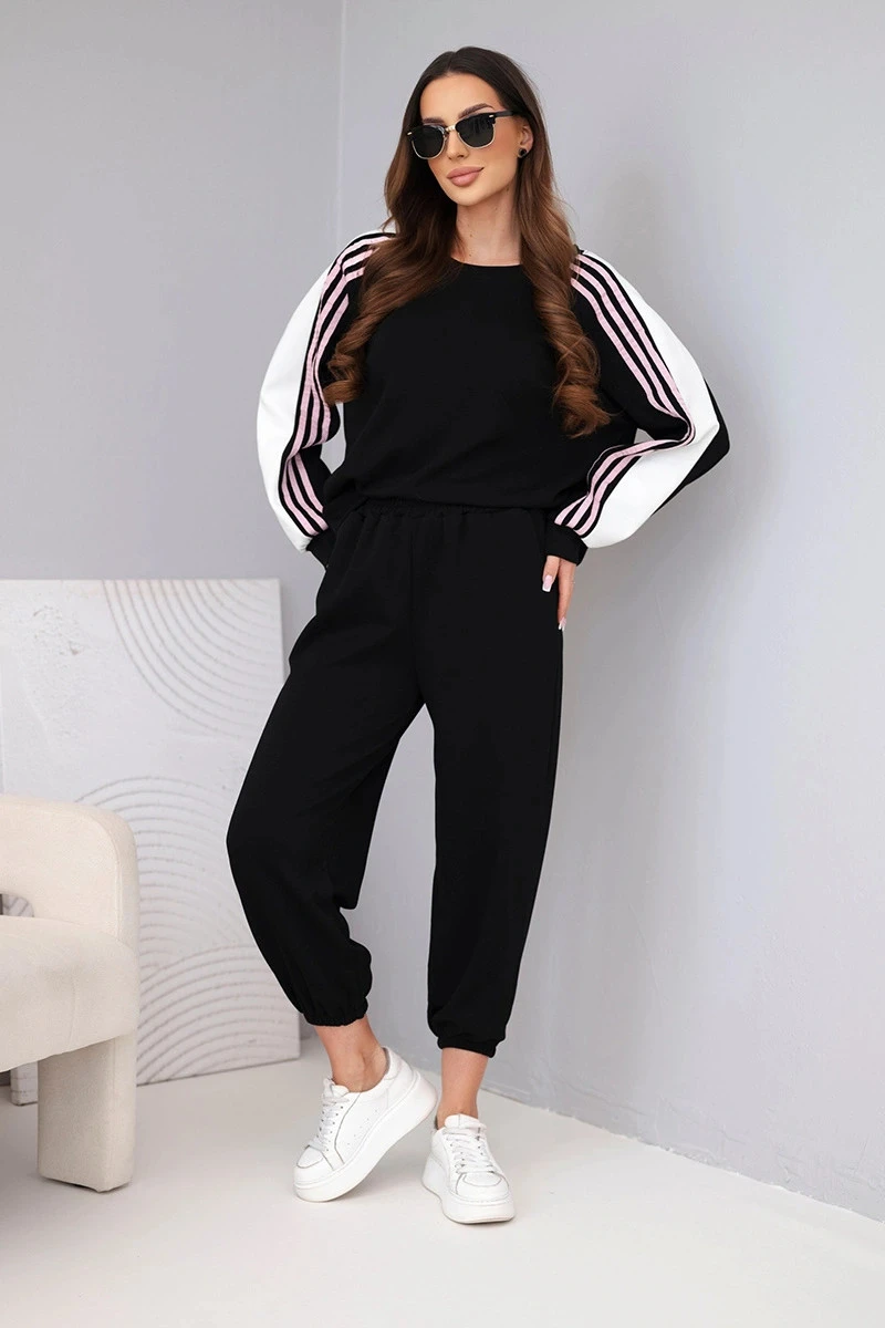 Dámský máslový komplet s lampasem a elastickým lemem černý