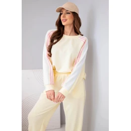 Dámský máslový komplet s lampasem a nápletem žlutý