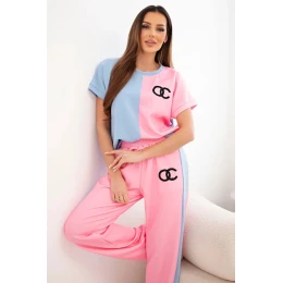 • Dámský máslový komplet s oversize mikinou a širokými kalhotami světle růžová + modrá