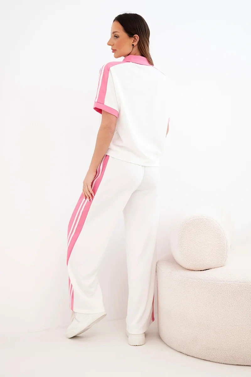 Dámský máslový komplet s polo mikinou a širokými kalhotami růžový