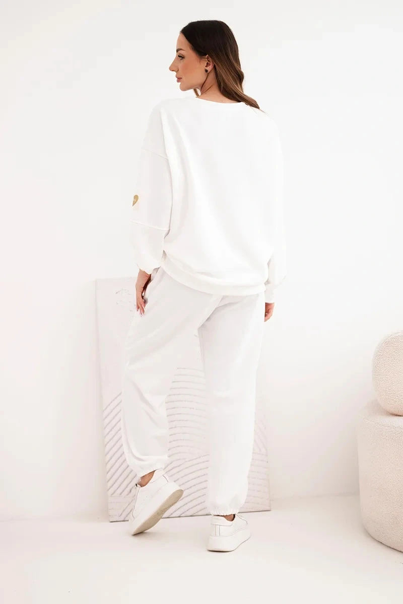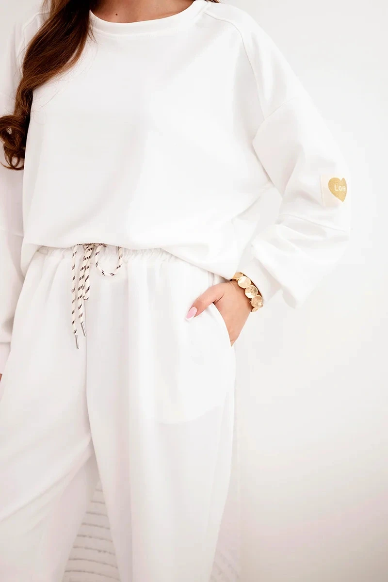Dámský máslový komplet s volnou mikinou a kalhotami s nápisem LOVE bílý