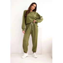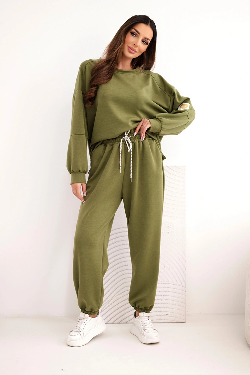 Dámský máslový komplet s volnou mikinou a kalhotami s nápisem LOVE olivový