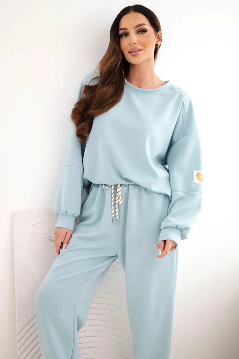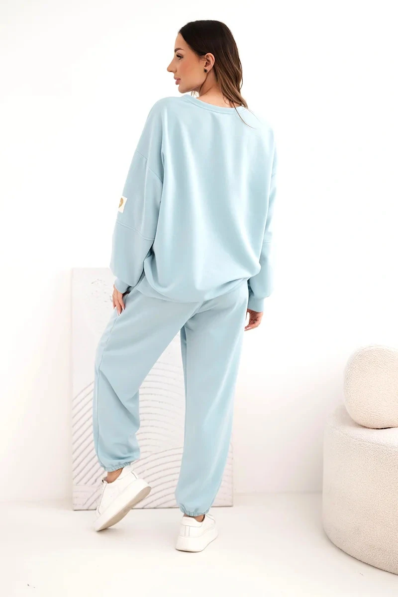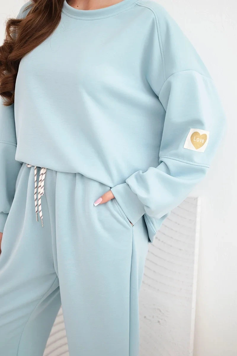 Dámský máslový komplet s volnou mikinou a kalhotami s nápisem LOVE tmavě mentolová